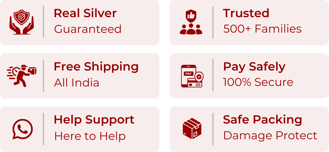 For any queries or support related to your order, our Customer Assistance Team is here to help. Whether you need help with product details, delivery updates, or post-purchase support, feel free to reach out. You can contact us via WhatsApp at +91 91672 52916 or email us at support@swarajyasilvers.com